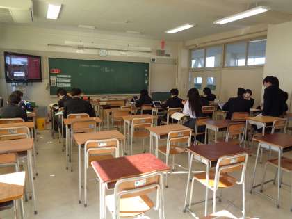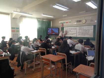 3校時の1年生の授業は、マグマ(理科・写真付き)、ダンス(保健体育・写真付き)、英語です。2年生はリコーダー(音楽)、英語(写真付き)です。3年生は、金属のイオンのなりやすさ(理科)、円周角の定理の逆(数学)です。