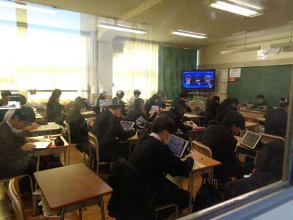 5校時の2年生の授業は、数学(写真付き)です。3年生は、書写(写真付き)、社会、英語です。