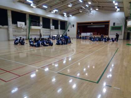 1年生は3・4校時に株式会社DFSの方々を講師としてお招きして、体験プロジェクトを実施しています。前半はウォームアップ、ダンスを創作する時間です。