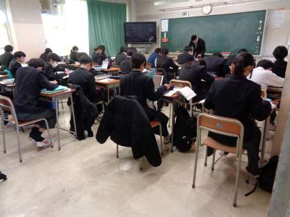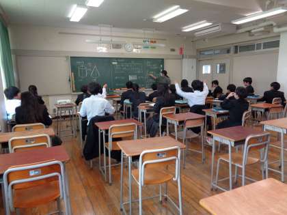 5校時の授業は家庭科、回転体について理解し、自分でデザインした平面図形の回転体の見取り図をかこう(数学・写真付き)です。