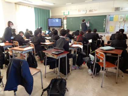 3校時の1年生の授業は英語(写真付き)、理科です。2年生は美術、栽培(技術)、理科です。3年生はバスケットボール(保健体育)、数学です。