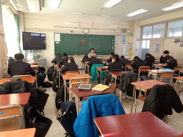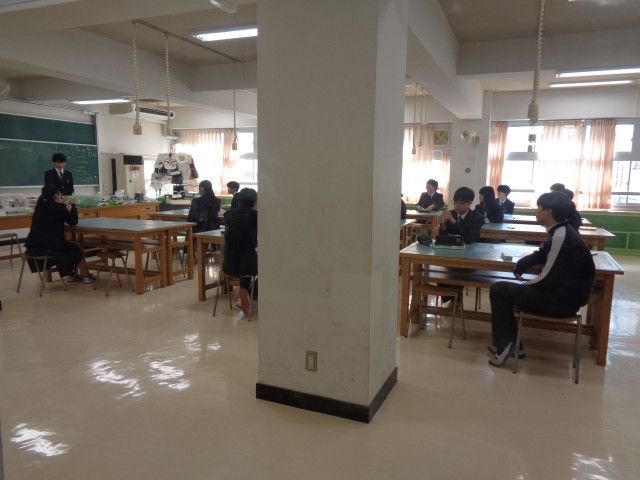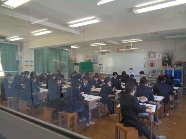3校時の1年生の授業は、角柱や円柱、円錐の表面積の求め方を理解し、求められるようになろう(数学・写真付き)、美術(写真付き)、英語(写真付き)です。2年生はTボール(保健体育・写真付き)、風の吹き方(理科)、助動詞(国語)です。3年生は鑑賞(音楽)、家庭科(写真付き)、社会です。