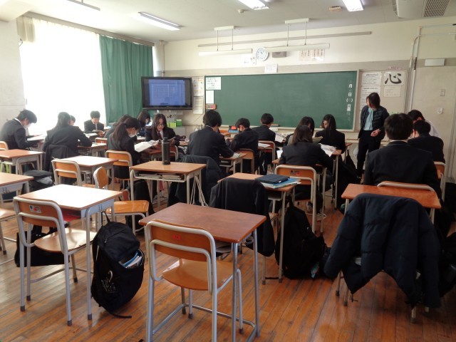 3校時の1年生の授業は、随筆を書こう(国語)、球の表面積と体積はどのように求めるのか(数学・写真付き)です。2年生は英語(写真付き)、Tボール(保健体育・写真付き)です。3年生は物質の状態変化(理科)、国語、音楽です。