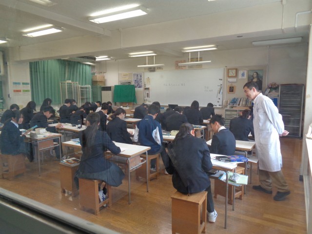 3校時の1年生の授業は漢字の成り立ち(国語)、ESAT-J、理科(写真付き)です。2年生は模写(美術・写真付き)、ESAT-J、理科です。3年生はアルティメット(保健体育・写真付き)、数学です。アルティメットとは、フリスビーを用いた競技です。