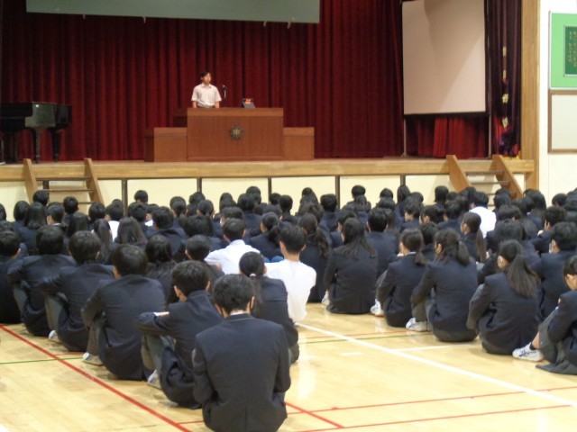 生徒会朝礼では各委員会の委員長からの報告、生徒会長からは感謝の気持ちを忘れず、残りの学校生活をしっかり送りましょう、という話がありました。