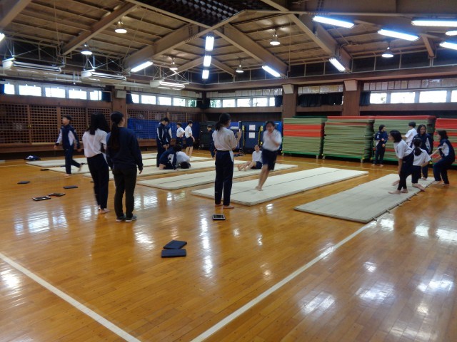 5校時の1年生の授業はマット運動(保健体育・写真付き)、百人一首(国語)、理科です。2年生は社会、数学です。
