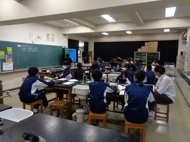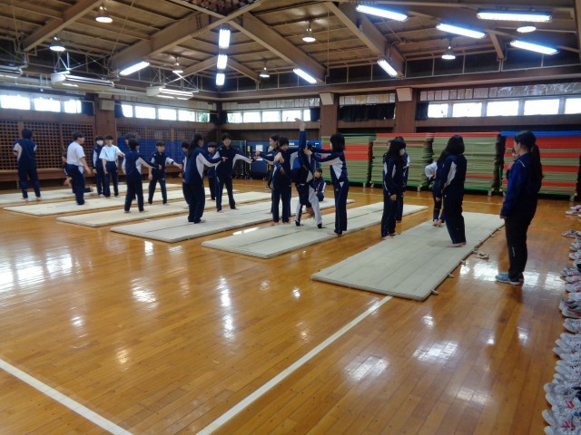 2校時の1年生の授業は理科(写真付き)、マット運動(保健体育・写真付き)、英語です。2年生は社会、前線と天気の変化(理科・写真付き)、英語です。3年生は学年集会です。