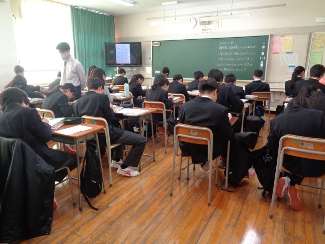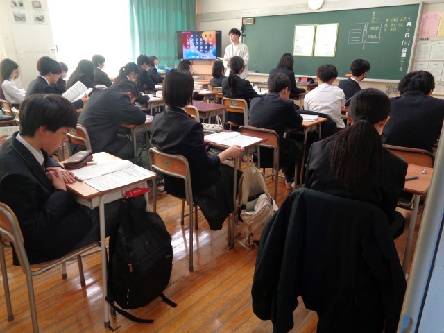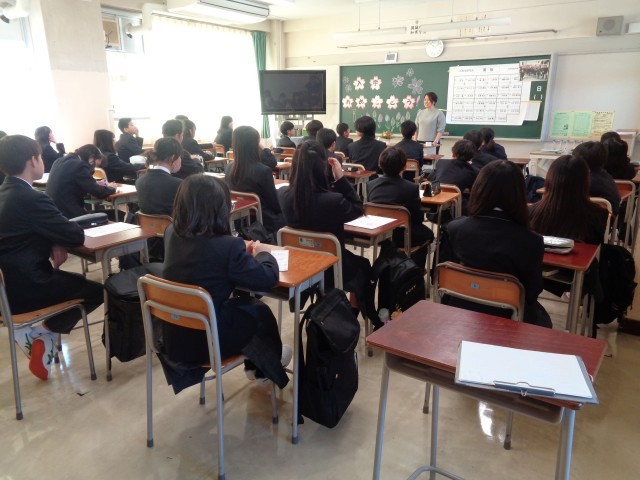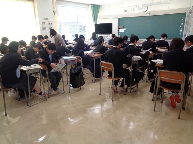 2校時の1年生の授業は、学級活動です。自己紹介をしています。2年生は教科書を配布しています。しっかり名前を書いています。3年生は学級活動です。