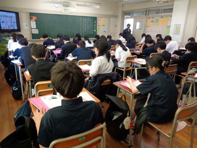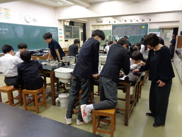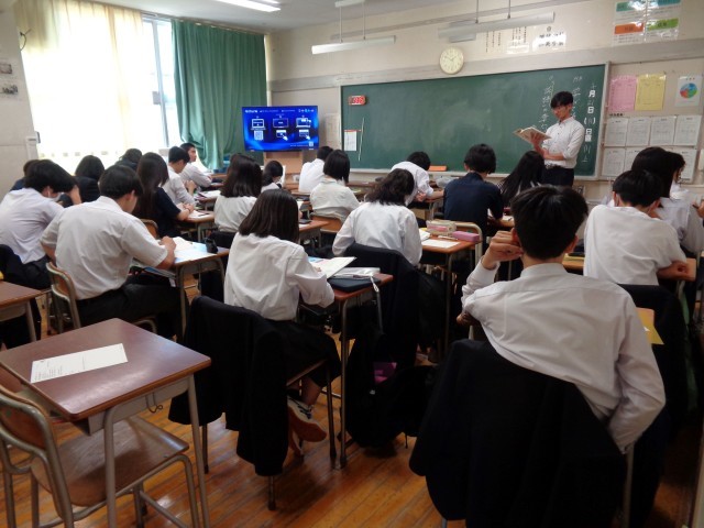 5校時の2年生の授業は、川がつくる地形(社会・写真付き)、アイスプラネット(国語・写真付き)、酸化銀の加熱(理科・写真付き)です。3年生は音楽、「論語」の章句を音読しよう(国語・写真付き)、日清戦争の背景・過程・影響を理解しよう(社会)です。