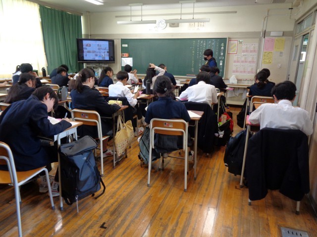 6校時の1年生の授業は、材料と加工の技術(技術・写真付き)、保健体育(写真付き)、音楽です。2年生は、アイスプラネット(国語・写真付き)、酸化銀の加熱(理科・写真付き)、多項式どうしの加減はどのようにするのか(数学・写真付き)です。3年生は英語(写真付き)、「論語」の章句を音読しよう(国語)です。