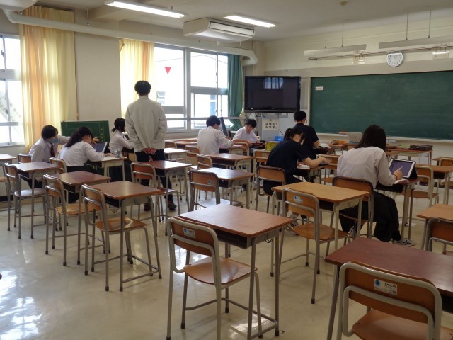 3校時の授業は、短距離走の分析(保健体育)、四季の天気についてまとめよう(理科)、単元内自由進度学習(数学)です。