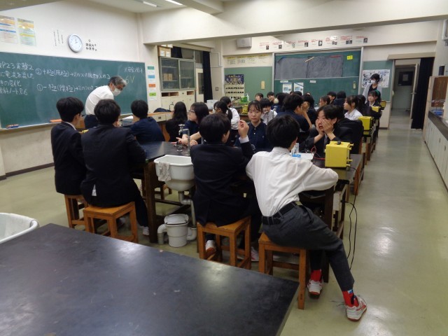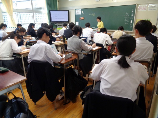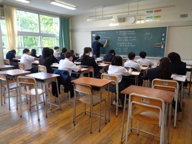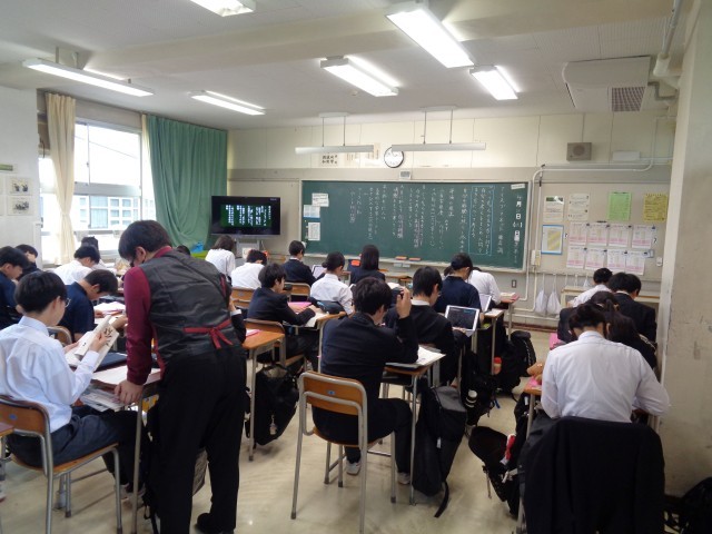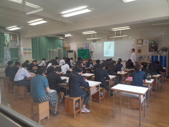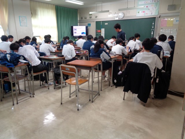 5校時の1年生の授業は保健体育、音読の技能を生かして発表しよう(国語)、正の数・負の数で量を表すこと(数学・写真付き)です。2年生は、水に電流を流したときの変化(理科・写真付き)、美術(写真付き)、ぐっちゃんの生き方に対する自分の考えをまとめ、人間の生き方について考えよう(国語・写真付き)です。3年生は英語(写真付き)、短距離走の分析(保健体育・写真付き)です。