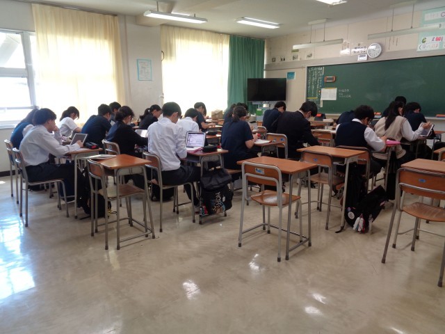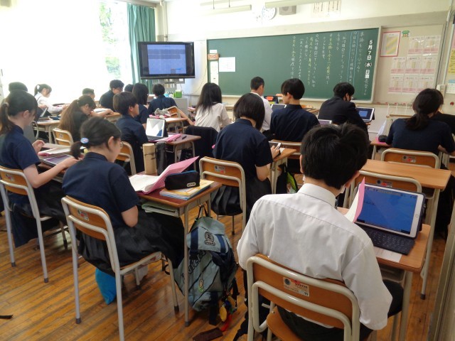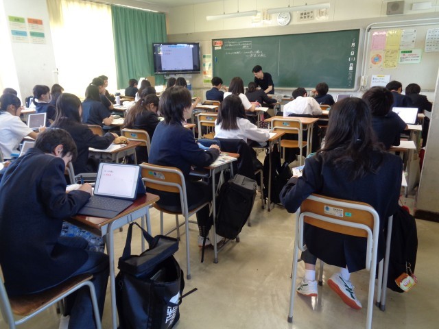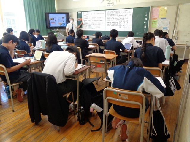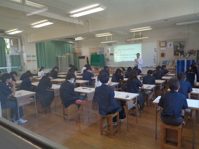 連休が終わり、授業が再開しました。2校時の1年生の授業は、レタリング(美術・写真付き)、なぜ領土をめぐって争いが起こるのか理解する(社会・写真付き)、英語(写真付き)です。2年生は、自立語について理解を深めよう(国語・写真付き)、原子の性質(理科・写真付き)、目的に応じた衣服の選択(家庭科)です。3年生は、第一次世界大戦(社会)、水に電気が流れるのはどんなときか(理科・写真付き)、数学(写真付き)です。
