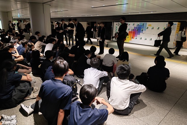 今日から3年生は修学旅行に行きます。東京駅で出発式を行いました。