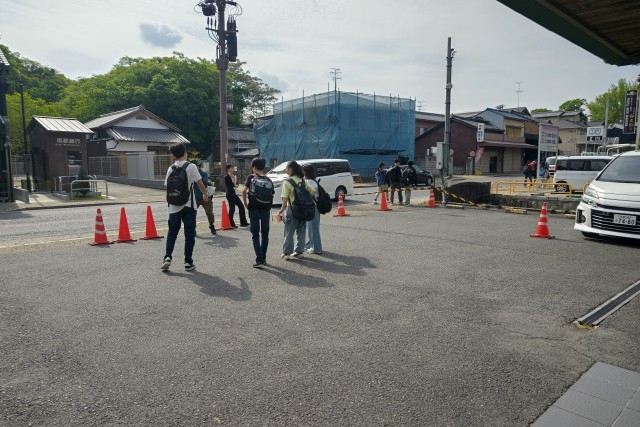 それぞれの班が出発しました。今日も晴れて暑くなりそうです。水分補給もしっかりとね、と声をかけました。いってらっしゃい!