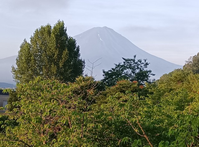 おはようございます。朝はいい天気です。富士山もきれいです。洗面、着替え、布団をたたみ、朝礼に向かいます。
