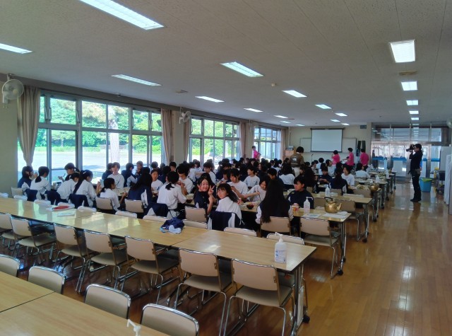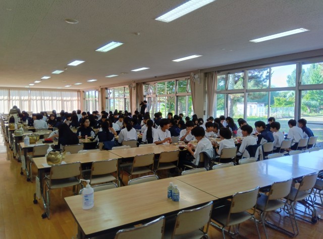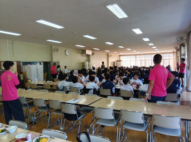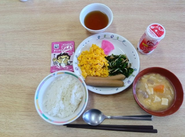 朝礼が終わり、朝食の時間です。食事係の皆さんが配膳しました。和食です。