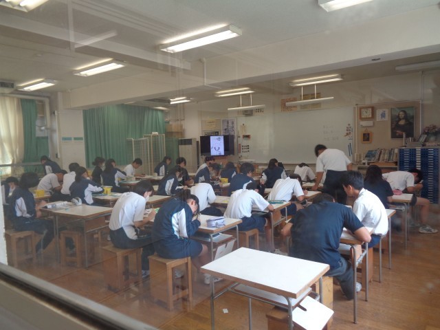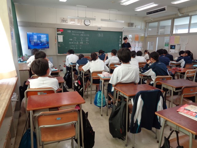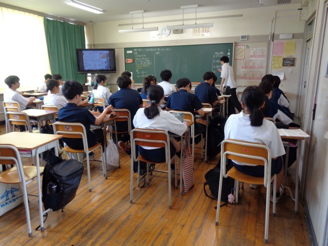 1年生の河口湖移動教室、2年生の職場体験が昨日で終わりました。4校時の1年生の授業は、バレーボール(保健体育・写真付き)、英語です。2年生は、割合について連立方程式を用いて解くにはどうするか(数学・写真付き)、ラジオ製作(技術・写真付き)です。3年生は、暑い時に身体にはどんな変化がおきるでしょう(保健・写真付き)、理科、美術(写真付き)です。