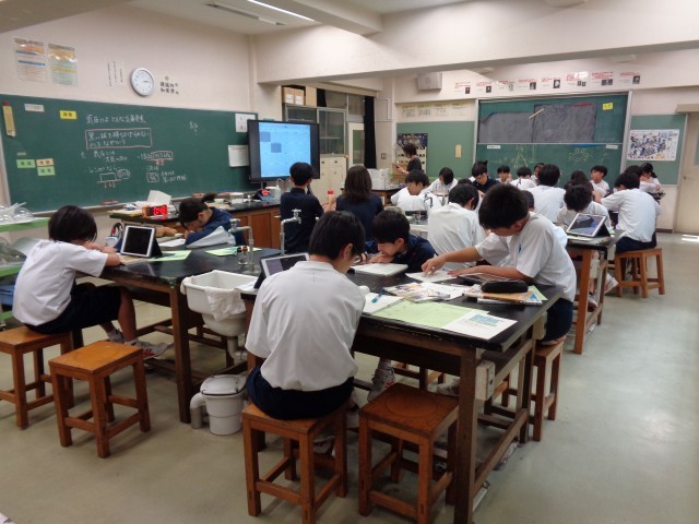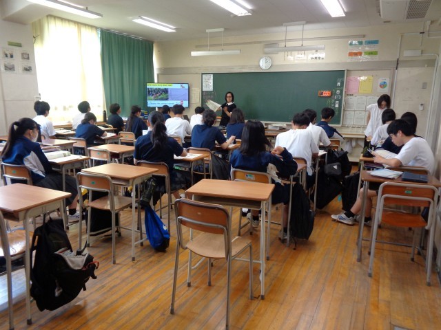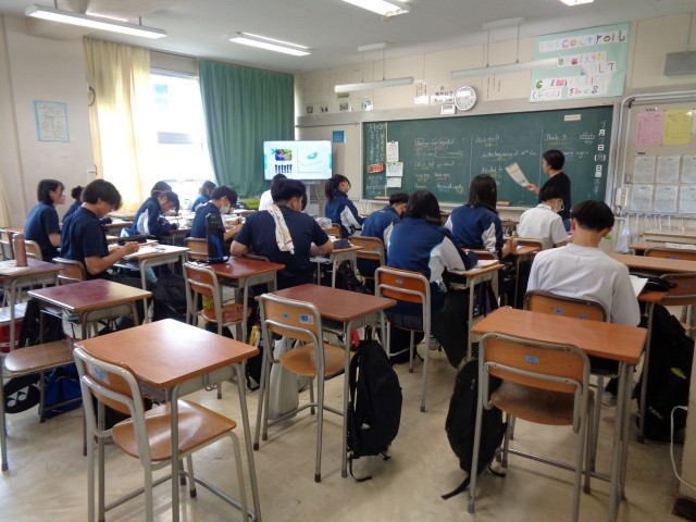今日は二十四節気の一つ、小暑です。5校時の1年生の授業は、中国・インドの課題(社会)、式の中の文字に数を代入してその値を求めよう(数学・写真付き)、壁新聞づくり(国語)です。2年生は社会、背泳ぎ(保健体育・写真付き)、気圧とはどんな気象要素か理解しよう(理科・写真付き)です。3年生は、合唱パート練習(音楽)、英語(写真付き)です。