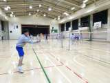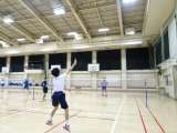 午後の体育館ではバドミントン部が活動しています。男子は試合形式の練習をしていまし...