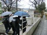 土曜授業が終わり、生徒が下校します。 登校時には曇りでしたが、雨がふっています。...