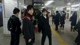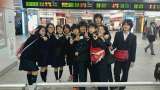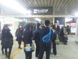 本日は2年生の鎌倉校外学習です。駒沢大学駅でチェックを受けています。みんな笑顔で...
