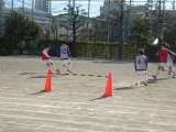 午後の校庭では陸上競技部が活動しています。 3人一組でエンドレスリレーをやってい...