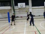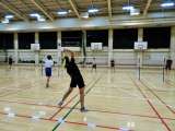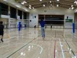 午後の体育館ではバドミントン部が活動しています。 1年生と2年生が組んで、1年生...