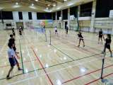 14時半から体育館ではバドミントン部が活動中です。 クリアやヘアピンなどの基礎打...