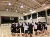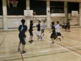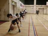 午後の体育館では、男女バスケットボール部が練習しています。男女合わせて60名の部...