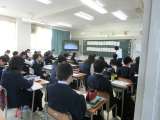 1年C組、D組の英語の授業の様子です。アルファベットの大文字の書き方を説明してい...