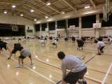 バスケットボール部は男女合同の練習です。 下半身の強化のために、裸足でのフットワ...