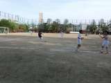 1年生は、基礎練習です。膝を曲げて低い姿勢でドリブルしています。ボールを見ずにド...