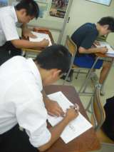 5月とはいえ暑い土曜日です。でも英検教室は開講中、みんな真剣に学習していますね...