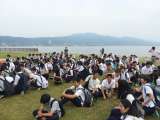 みんなの集合が早かったため、時間ができたので琵琶湖畔で自由時間です。 タクシーに...