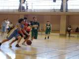 体育館では、男子バスケットボール部が世田谷中と練習試合を行っています。春季大会で...