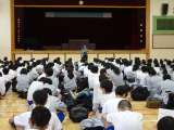 運動会前日、体育館で全体学活を行っています。明日の予定や注意事項など大切な話なの...