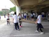 全体学活のあと、係生徒が運動会の準備をしています。テントを張ったり、机を運んだり...