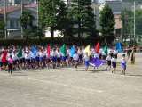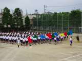運動会の全校練習を行っています。明日の予行に向けて、開閉会式の練習をしています。...