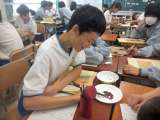 3年生の教科「日本語」の様子です。箸についての学習です。箸を使って小豆をつかんで...