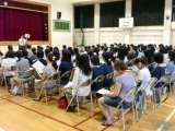 今学期最後の全校朝礼です。校長から夏休みには、日頃の生活と違う中で、様々な刺激を...