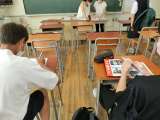 教育相談とあわせて、補習が行われています。 視聴覚室では、地理の補習が行われてい...