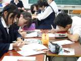 3年生の総合の時間です。修学旅行の事後学習を行っています。見学場所の新聞を作って...
