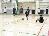 午後の体育館ではバスケットボール部が活動しています。男子はミートからのドライブ、...