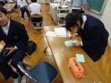 投票の様子です。実際の投票所と同じ道具を使って投票を行っています。(遠藤)