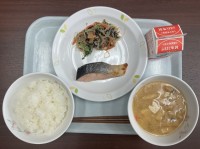 ごはん(有機米)鮭の塩麹焼き 小松菜と春雨のサラダ いなか汁 牛乳