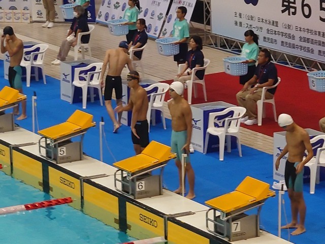 17日から鹿児島県で開催されている第65回全国中学校水泳競技大会。東京都大会で標準記録を突破し全中への出場を果たした本校3年男子生徒。3日目の19日、男子100mバタフライ予選(5組6コース)に出場し、緊張ぎみでしたが見事決勝進出を果たしました。