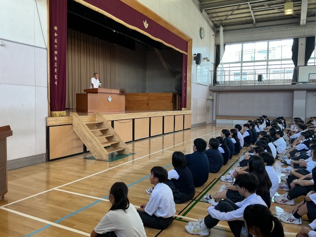 その後、生活指導主任より、一人一人へのありがとうの気持ちと共に、今後の生活についてのお話がありました。