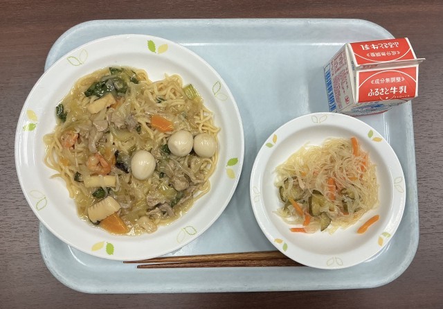 五目あんかけ焼きそば 春雨サラダ 牛乳