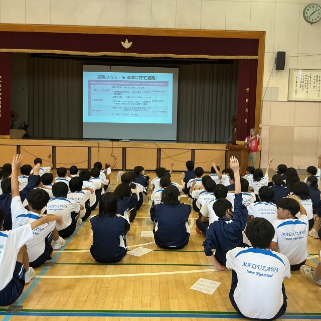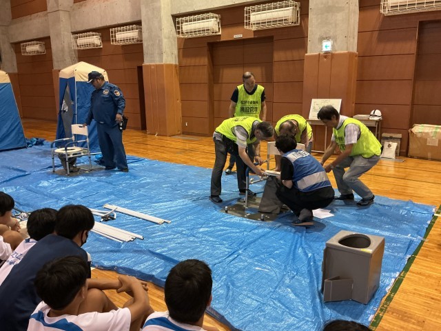 1学年では、地域の皆さま方のご協力のもと、本校が災害時避難所となった場合の概要を知り、防災に関する意識を高めるため、避難所体験を実施しました。